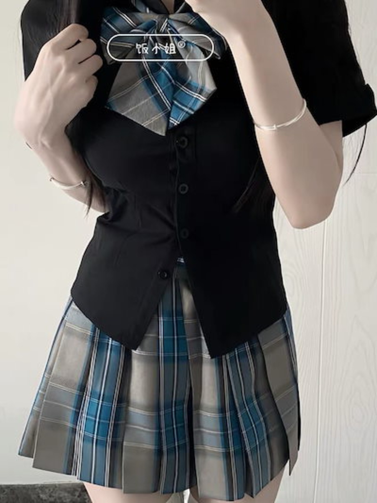 JKユニフォームウエストシャツトップス女性半袖カレッジスリム薄い白シャツセット