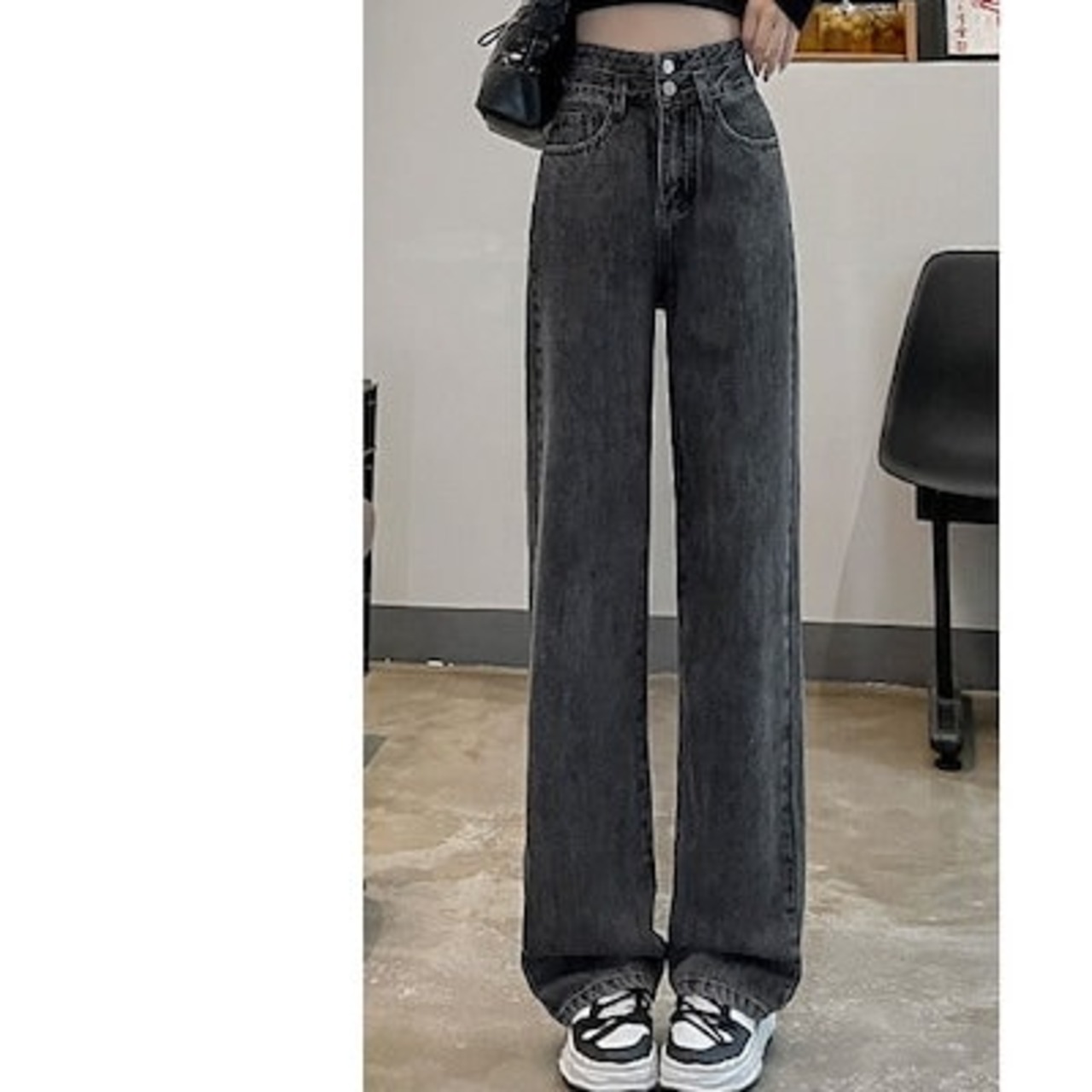 デニムパンツダブルボタンハイウエストジーンズ女性のたるみ感の薄い百緩いワイドパンツドラッグ