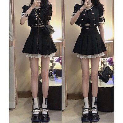 セットアップ夏の新作JK制服ダブルブレストへそ出しAラインプリーツスカートスーツ