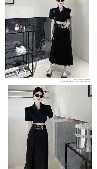 セットアップスーツ スカート 夏新作 ショート丈 トップス ハイウエスト 半そでスカート 薄手 2点セット