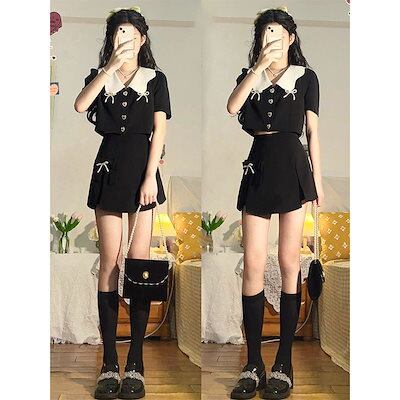 セットアップ2024夏新作スタンドカラーボウタイシャツ半身スカートケーキスカートファッションセット