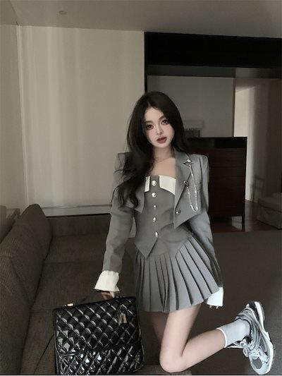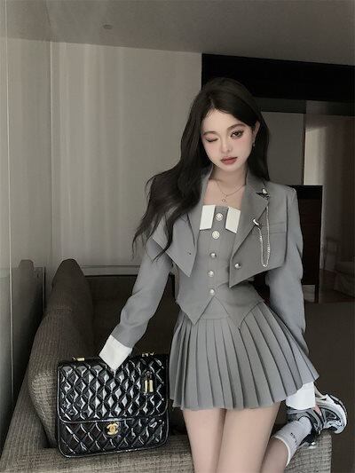 セットアップJK制服セット ビスチェ ベスト ブレザー レディース ハイウエスト プリーツスカート ビスチェ 3点セット