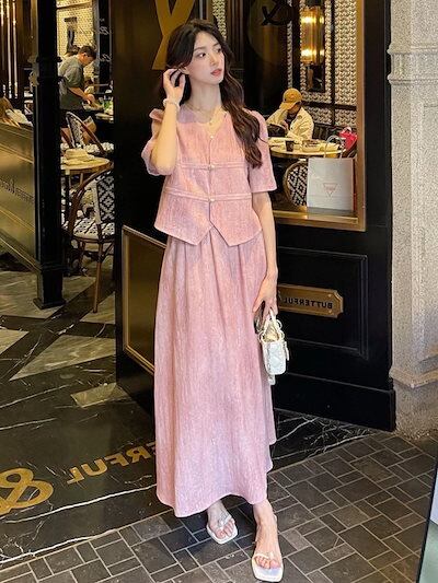 セットアップ2024夏新作ツーピース半袖トップスハイウエスト半身スカートスーツ