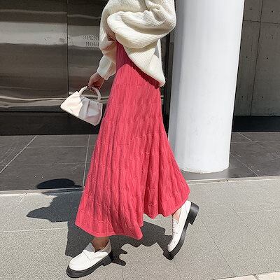 秋冬ハイウエストカットスカート女子丈の毛糸A字大振り プリーツスカート ロングスカート 可愛い スカート ハイウエスト タイトスカート 流行り 百掛け スカート