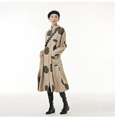 可愛いドットシャツワンピースロング長袖ブラウスレディース韓国ファッション秋服着痩せ効果リネンカーディガン 母の日