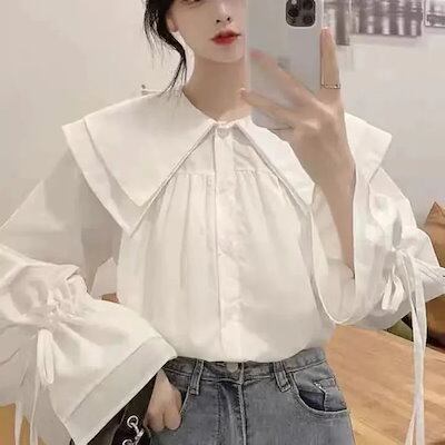 【3日間発送】 2024 新作 秋シャツ レディース 長袖ホワイトのドールネックシャツ 秋 かわいい上着 快適 カジュアル 韓国ファッション