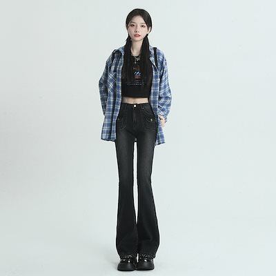 2024 初秋 デニムパンツ パンツ デニム ジーンズ スキニー ワイドレッグハイウエスト 脚長効果 美脚効果 細見え ウォッシュ加工 カジュアル レディース お出かけ 韓国ファッション | gizshop