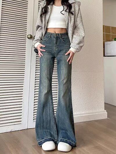 2024 初秋 デニムパンツ パンツ デニム ジーンズ スキニー ワイドレッグ ハイウエスト 脚長効果 美脚効果 細見え 水色 ライトブルー グレー カジュアル レディース お出 韓国ファッション | gizshop