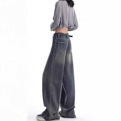 2024 初秋 デニムパンツ パンツ デニム ジーンズ ワイド ストレート ハイウエスト 脚長効果 美脚効果 細見え ウォッシュ加工 カジュアル レディース お出かけ 韓国ファッション | gizshop