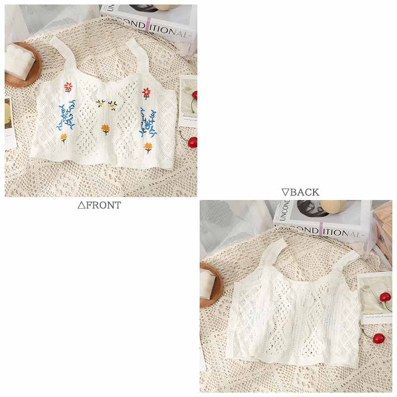 2023新作 レディース トレンド トップス サマーニット 大人ガーリー キャミソール カギ編み 刺繍 白