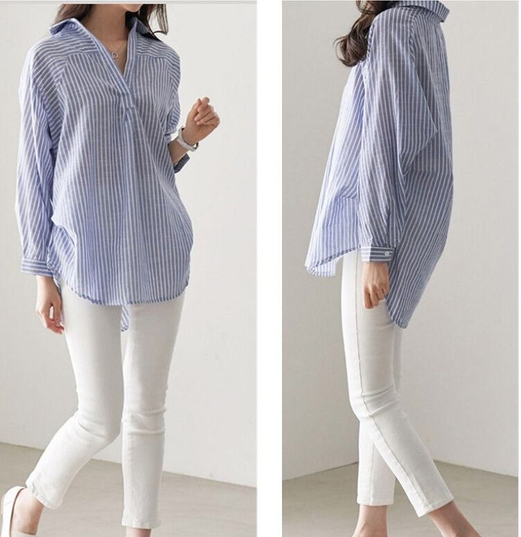 【大きいサイズL-4XL】【秋冬新作】ファッショントップス♪ブルー/ホワイト2色展開◆