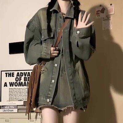 デニムジャケット レトロデニムジャケット女性春と夏の新しい緩いファッションジャケット