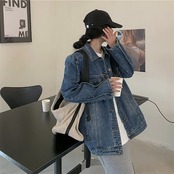 デニムジャケット レトロなミディアムレングスのデニムジャケットの女性2024新しい春韓国の緩いカジュアルなトップス
