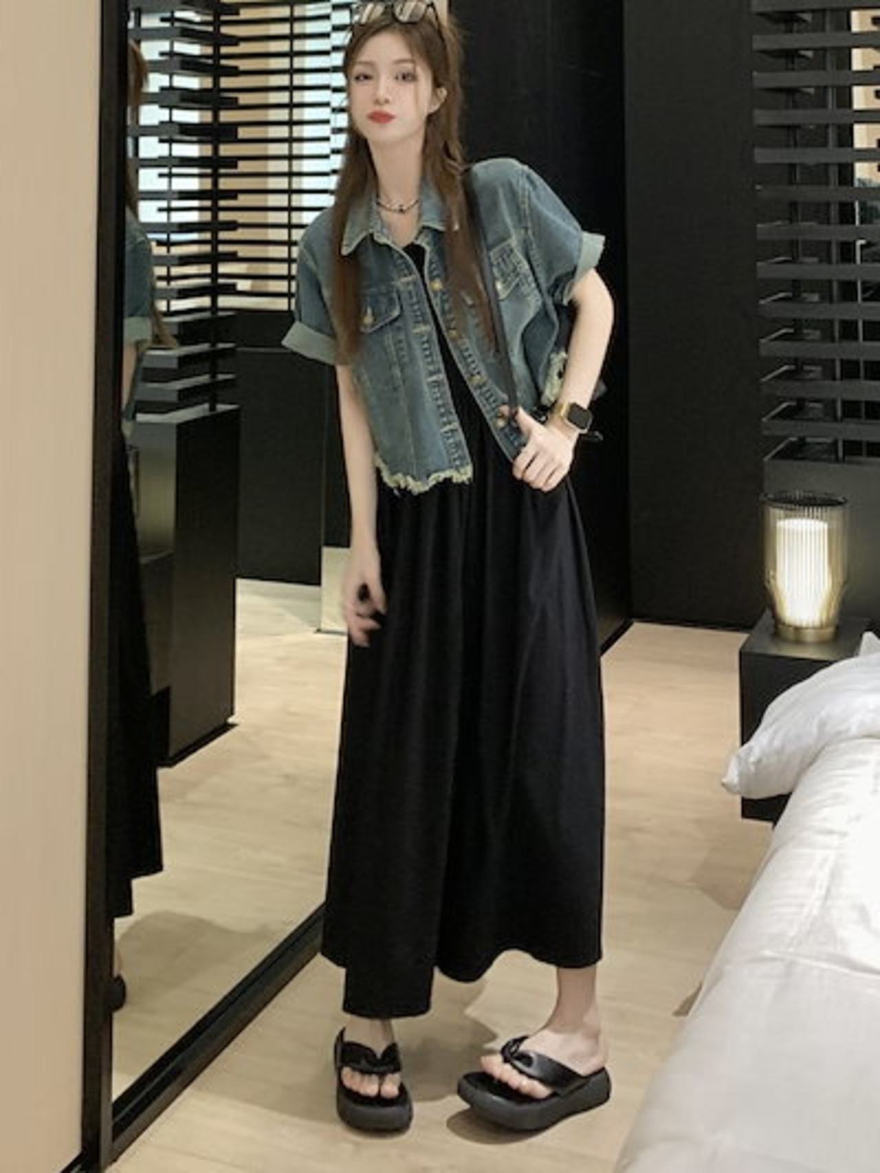 デニムジャケット 2024 夏の薄手デニム半袖ジャケット