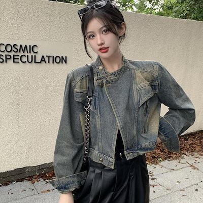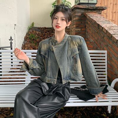 デニムジャケット レトロスタンドカラーデニムジャケット女性2024春夏新作ファッションルーズショートジャケット