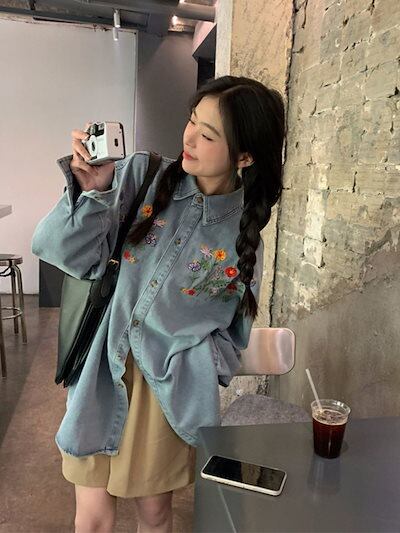 デニムジャケット ヴィンテージ刺繍デニムジャケット女性春2024新しい緩いミディアムレングス長袖トップス