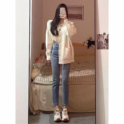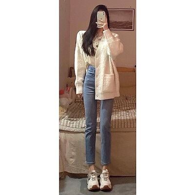 脚長効果!スキニーデニムパンツ セブンエイトナインポイントジーンズ女性新作ハイウエストゴムストレートパンツスキニーパンツ