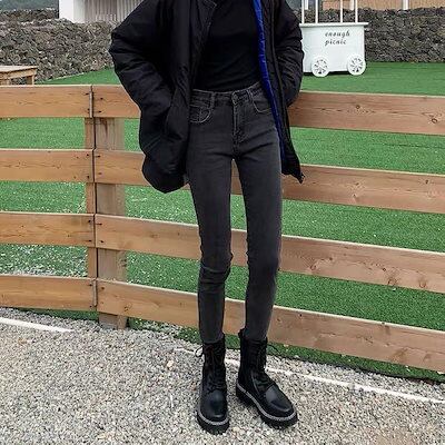 脚長効果!スキニーデニムパンツ ジーンズ女性ハイウエスト韓国版タイトな弾性ズボンの学生ズボン