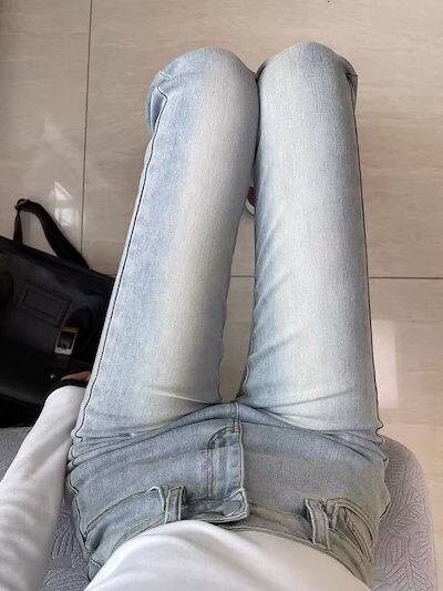 脚長効果!スキニーデニムパンツ マイクロフレアージーンズ女性春秋新作ハイウエストストレッチドラッグパンツ