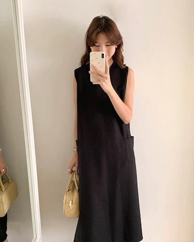 2024夏 韓国ワンピース ドレス ミディアム丈 ラポケット ウンドネック Aライン ゆったり 細見え 夏 白 黒 カジュアル おしゃれ かわいい キュート 韓国ファッション レディース お出かけ | gizshop