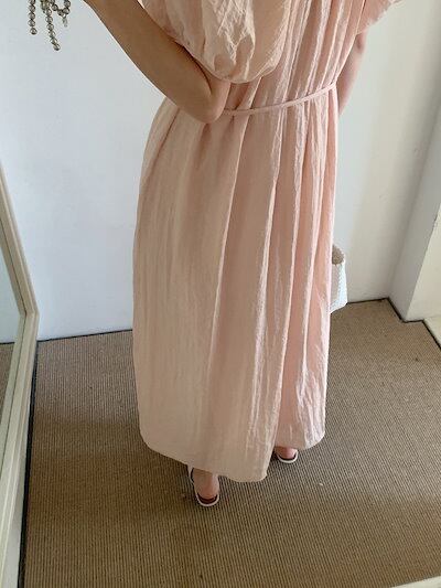 2024 春夏ワンピース ミモレ丈 半袖 バブル袖 ラウンドネック Aライン リボン ゆったり 細見え 夏 カジュアル おしゃれ かわいい キュート 韓国ファッション レディース お出かけ | gizshop