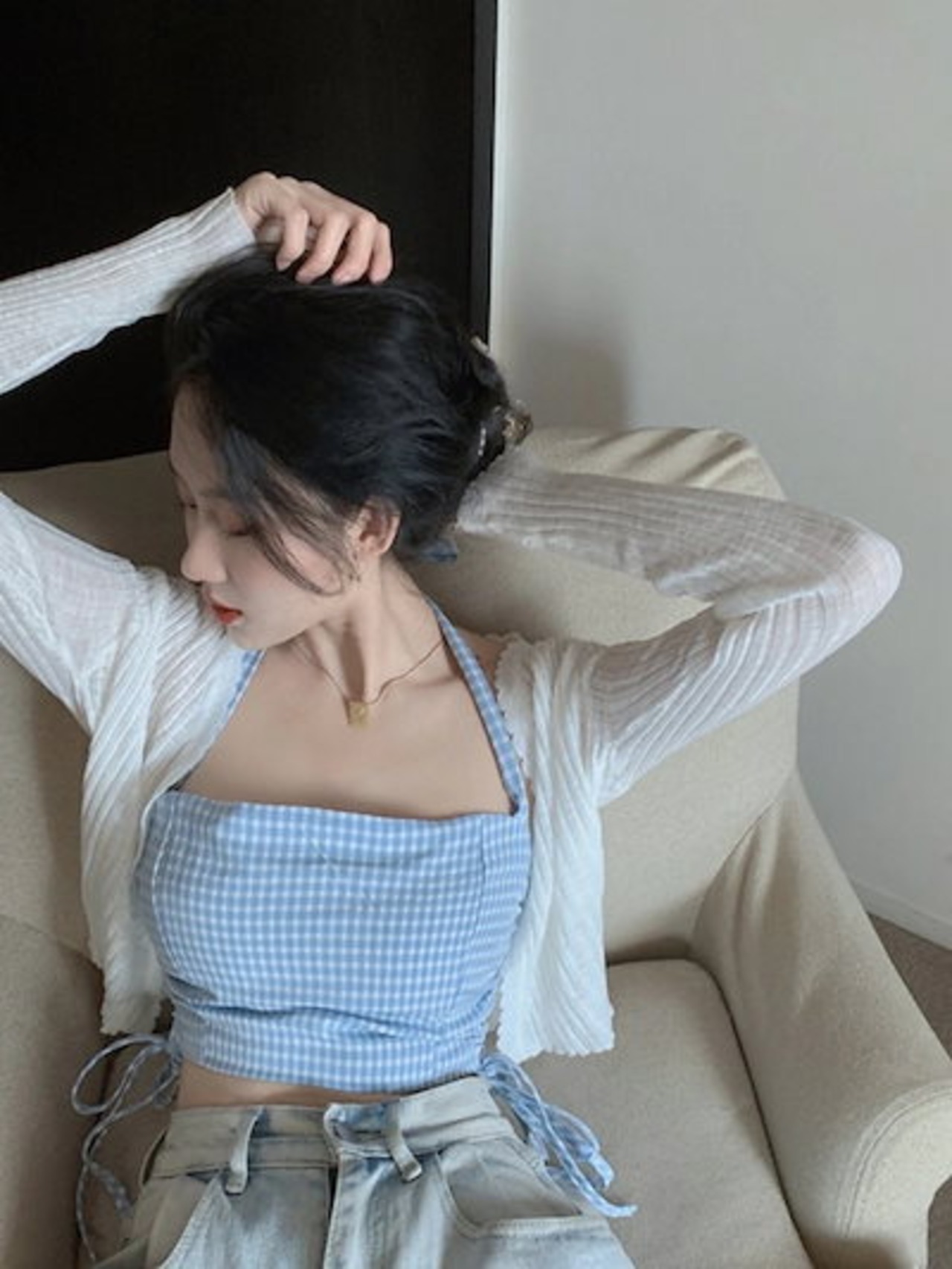 2024 春夏 ショート丈 薄手 カーディガン トップス 長袖 紫外線対策 UVカット冷房羽織り加工 きれいめ ライトニット オフィス OLネックカジュアルフレンチフェミニンファッション韓国レディース | gizshop