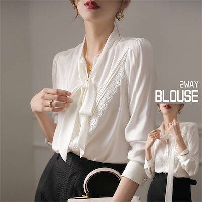 ブラウス シャツ インナー レディース トップス スーツインナー ビジネススーツ 白シャツ 長袖 ボウタイ リボン リボンタイ ボウタイリボン レース オフィスカジュアル フォーマル 上品 きれいめ | gizshop