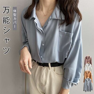 ブラウス レディース トップス シャツ インナー 白シャツ スーツインナー ビジネススーツ きれいめ 春 夏 秋 冬 長袖 無地 シンプル ゆったり 大人カジュアル 体型カバー 二の腕カバー 洗える | gizshop