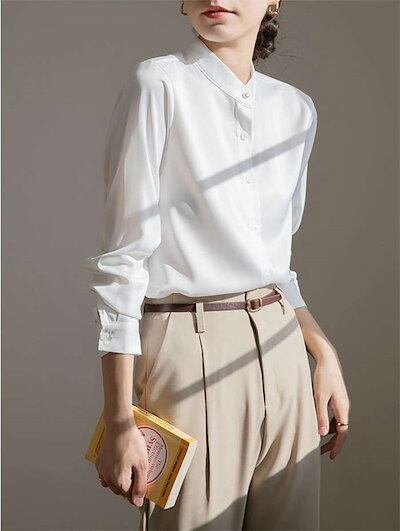 ブラウス シャツ インナー レディース トップス スーツインナー ビジネススーツ 白シャツ 春夏秋冬 長袖 スタンドカラー パール付き パール オフィスカジュアル フォーマル 上品 洗濯可 着痩せ 小 | gizshop