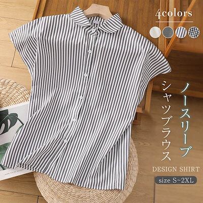 シャツ レディース ブラウス ノースリーブ シャツブラウス ストライプ ギンガムチェック 白 スーツインナー きれいめ シンプル オフィス 通勤 薄手 フォーマル カジュアル OL ゆったり おしゃれ | gizshop