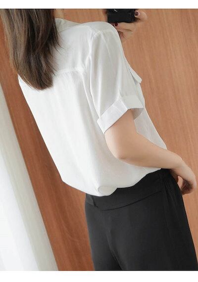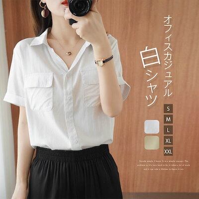 シャツ レディース ブラウス ワイシャツ 無地 半袖 シャツブラウス フォーマル vネック トップス 白シャツ スーツインナー お洒落 可愛い カジュアル オフィス 通勤 OL シンプル ゆったり ベ | gizshop