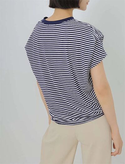 Tシャツ レディース カットソー 半袖 コットン 綿 フレンチスリーブ tシャツ トップス インナー プルオーバー スーツインナー きれいめ Uネック クルーネック 無地 ボーダー柄 ストライブ ロゴ | gizshop