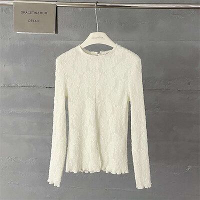 カットソー レース レースカットソー レディース トップス インナー 長袖インナー スーツインナー ロングTシャツ ロンT レース クルーネック 長袖 重ね着 レイヤード 小顔 体型カバー カジュア | gizshop