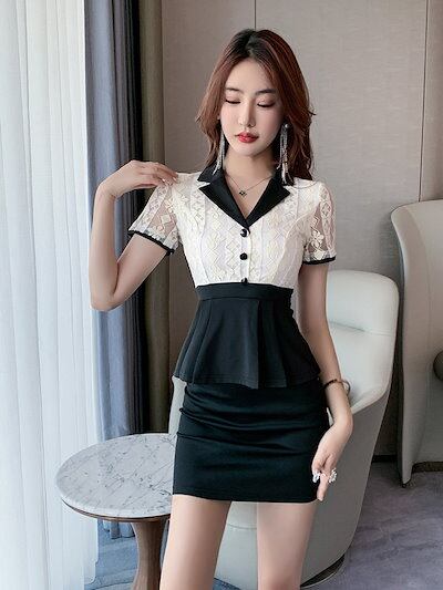 スーツセットアップユニフォーム エステ サロン通勤 エステ制服 レディース 女性 制服スカート おしゃれ 半袖 ジャケット2点セットシャツ+ズボン