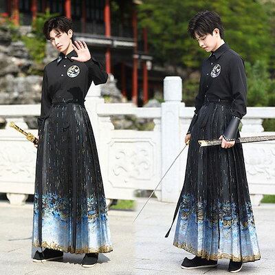コスプレ衣装 漢服 メンズ レディース 上下セット 長袖トップス 巻きスカート 着脱しやすい 袖カバー 刺繍 素敵 鳳凰 プリント エスニック チャイナ服 ハロウィ