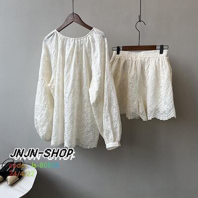 2024新入荷 夏 長袖セットアップ レディース 上下セット 薄手 パンツ 40代50代50代 30代 レース刺 通勤 大人