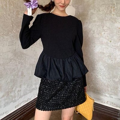 2color レディース ス カットソー ペプットソー オーバー ペ切り替え 裾ーン 無地 袖あり 長袖 スリム パフブ バックシャン