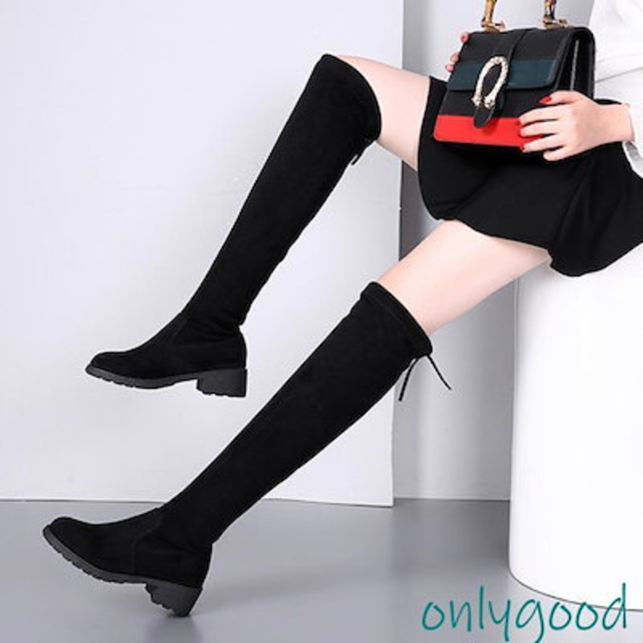 ストレッチブーツ ニーハイブーツ レディース ローヒール ロングブーツ 裏起毛 防寒 膝上 大きいサイズ 美脚 靴 歩きやすい 細見せ 秋 冬 黒 ブ