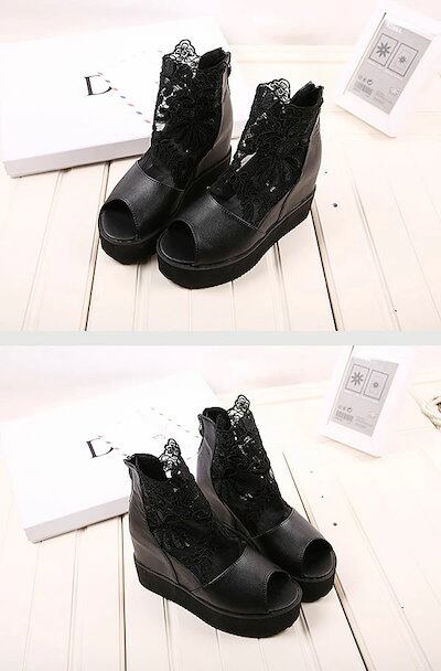 疲れにくい ヒール10cm メッシュ オープントゥ レディース カジュアル フラワーレース 歩きやすい パンプス シースルー 黒 ハイヒール サンダル 美脚 ブーツサンダル レース ブーサン 厚底 | gizshop