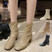 ローヒール ヒール高さ6cm 美脚 ジッパー カジュアル レディース オールシーズン ブーツ ブーツ スクエアトゥショートブーツ 痛くない 疲れにくい 太ヒール ショートブーツ レディース スクエアト | gizshop