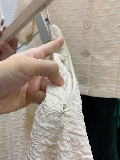 ▲先述のとおり、海外製品の縫製の荒さやボタン付けの甘さ、ほつれ等は良品の範疇とみなしております。