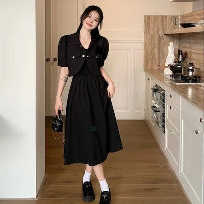 バブル袖 アウター キャミソールワンピース 2点セット レディー 夏の新作 気質 身を修める ファッション スカートセットワンピース ドレス ワンピース 秋冬 パーティードレス ロングワンピース ニッ | gizshop