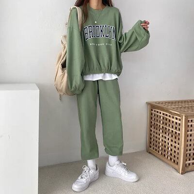 【2枚購入で 2oo円OFF!】 新作 カジュアル 着痩せスウェット セットアップ パーカー ワイドパンツ 二点セット 大きめサイズ ルームウェア セットアップ