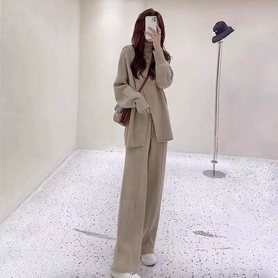 秋冬 新作 おしゃれ 気質 レディースセットアップ ニット アウター 二点セット 上下セット セーター ワイドパンツ セットアップ7