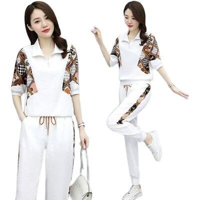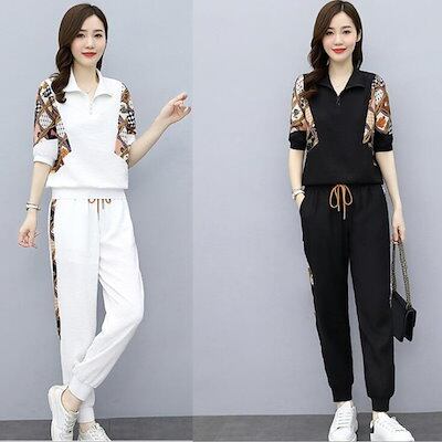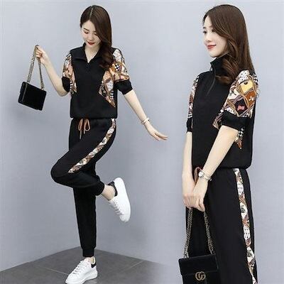 【2点セット】涼しく楽ちんセットアップ レディース 夏 2024新作スポーツカジュアル2点セット 韓国 半袖 ルームウェア セットアップ スウェット上下セット スーツ