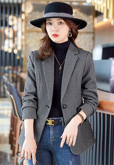 テーラードジャケット レディース スーツ 春秋 千鳥柄 フォーマル ジャケット ブレザー コート スーツジャケット トップス 長袖 アウター 上品 カジュアル オフィス 通勤 着痩せ お洒落 通勤 O | gizshop