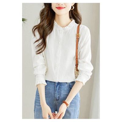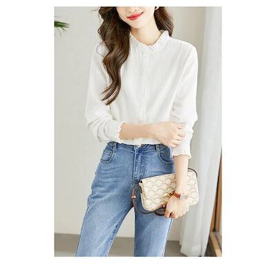 シャツ ブラウス レディース 長袖 スーツインナー スタンドカラー コットン とろみシャツ フォーマル 無地 ホワイト 白シャツ オフィス ビジネス きれいめ