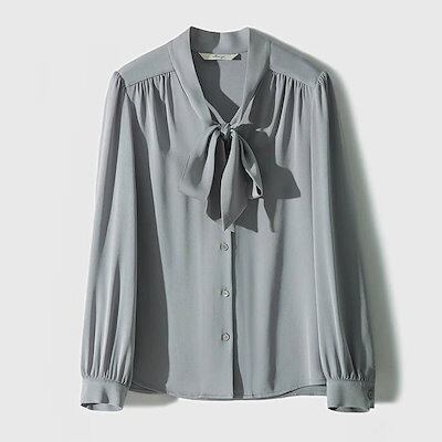 ボウタイブラウス 長袖 レディース Vネック シフォン シャツブラウス 無地 トップス とろみブラウス スーツインナー 入学式 卒業式 ママ オフィス フォーマル シンプル 着?せ 可愛い お洒落 大