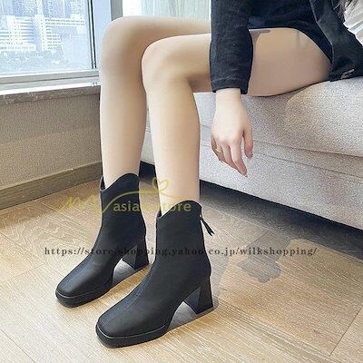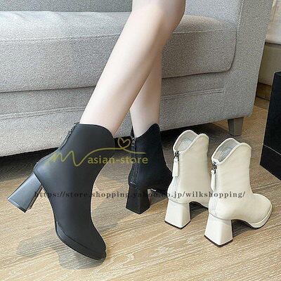【3日以内出荷】ブーツ レディース ショートブーツ シューズ 靴 太ヒール チャンキーヒール ブーティー スクエアトゥ 合皮ブーツ PUブーツ くつ 後ろファスナー COS