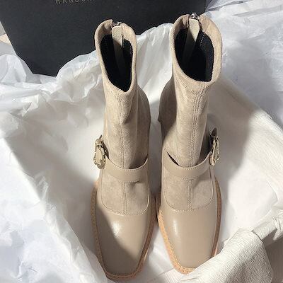 秋冬ファッション レディースショートブーツ レトロ 厚底 マーディンブーツ 秋冬 アウター なめし皮 イギリス風 ショットブーツ イエロー ブーツ 靴